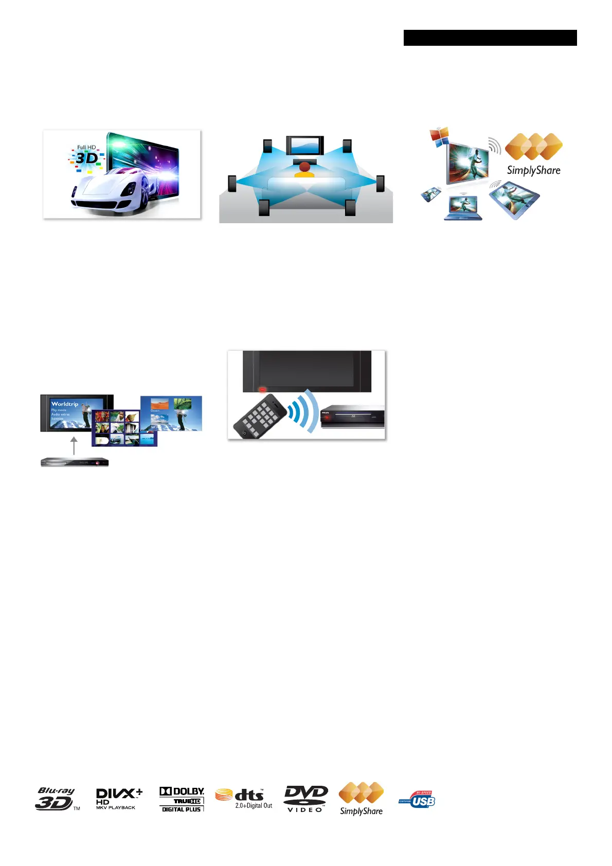 3D Blu-ray Disc playback DivX Plus HD, USB2.0 Media Link