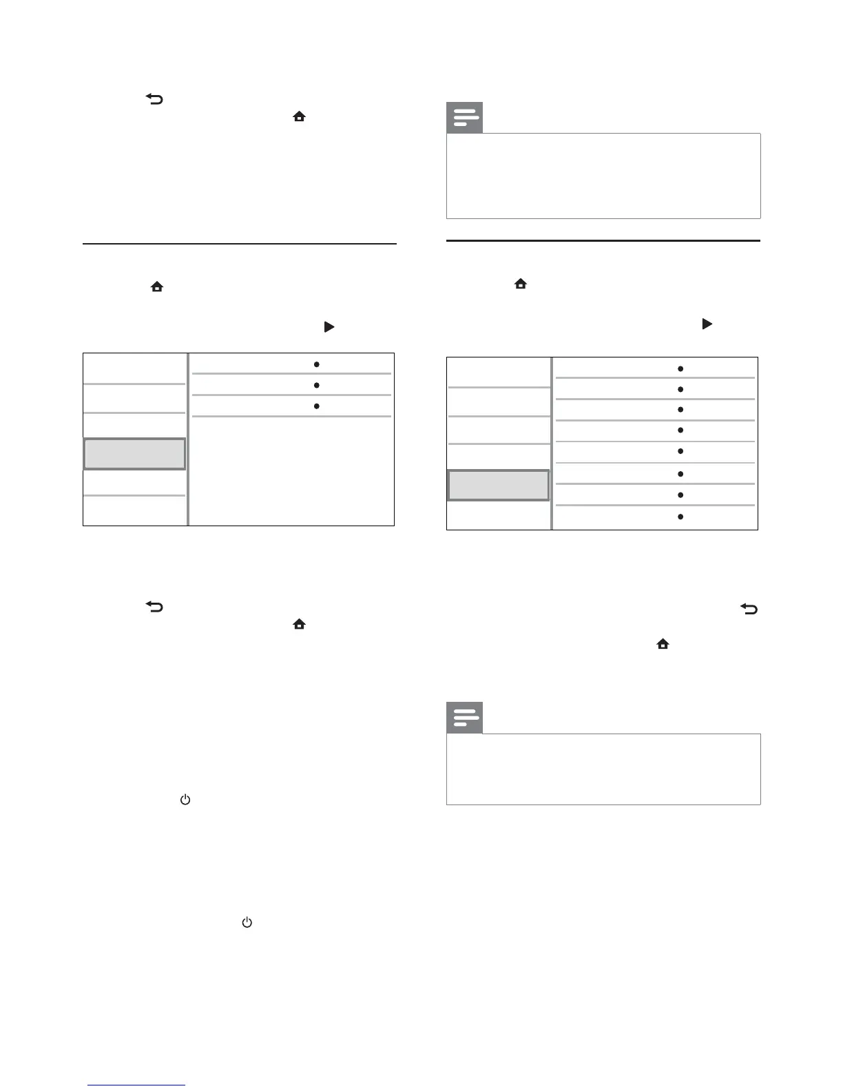 To return to the previous menu, press •
