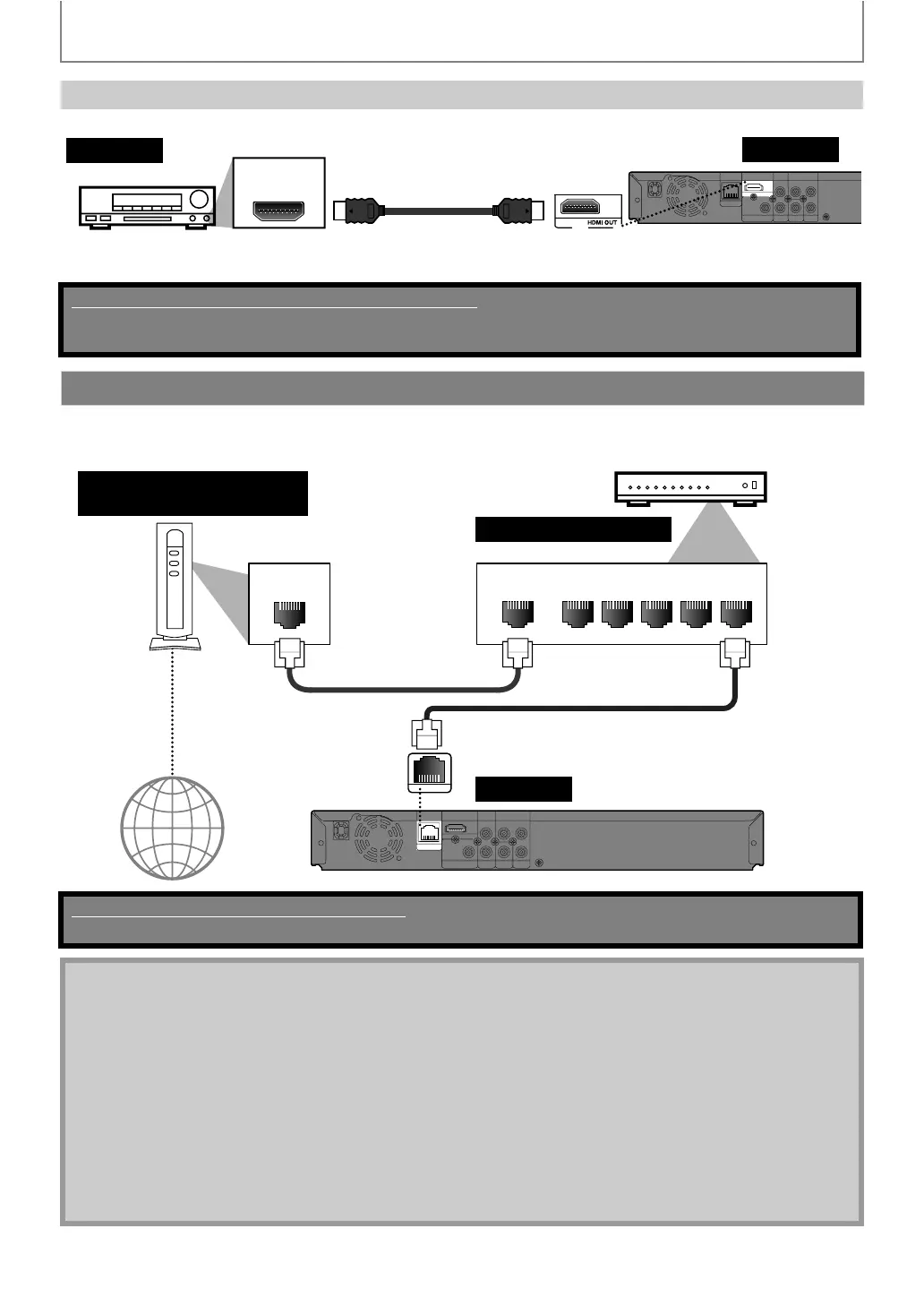 • By connecting this unit to the Internet, you can upgrade the software via the Internet or access the BD-Live, Netflix and