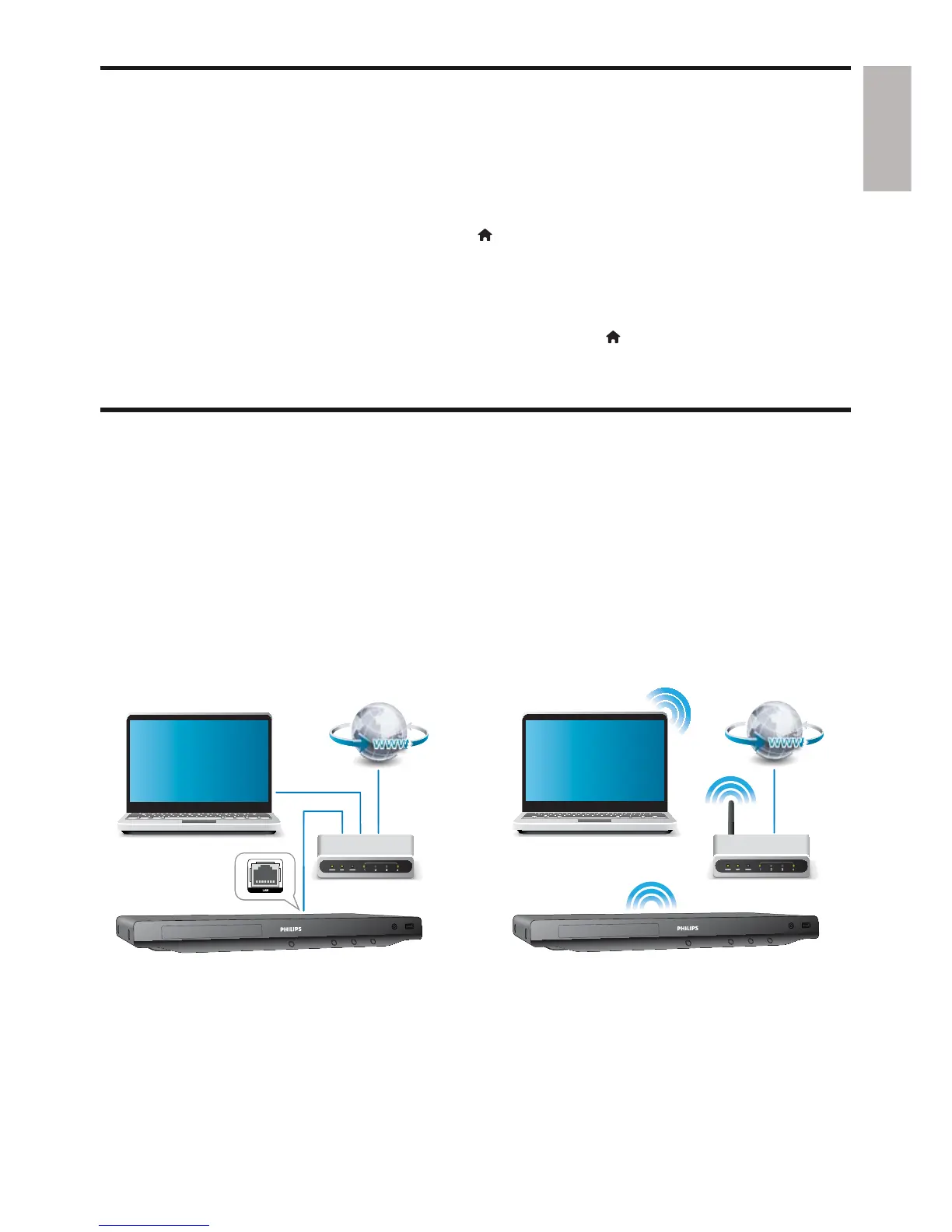 1 Connect this player to a computer network and the Internet, through wired (Ethernet) or