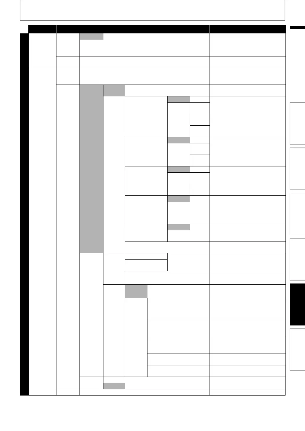 Category Menus / Options Description