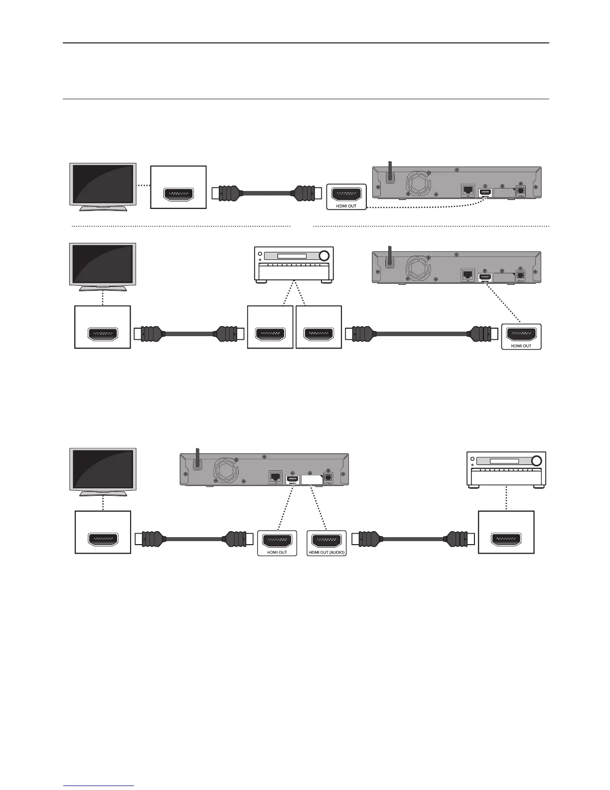• With this connection, the HDMI OUT jack only outputs video, and the HDMI OUT (AUDIO) jack only outputs audio.