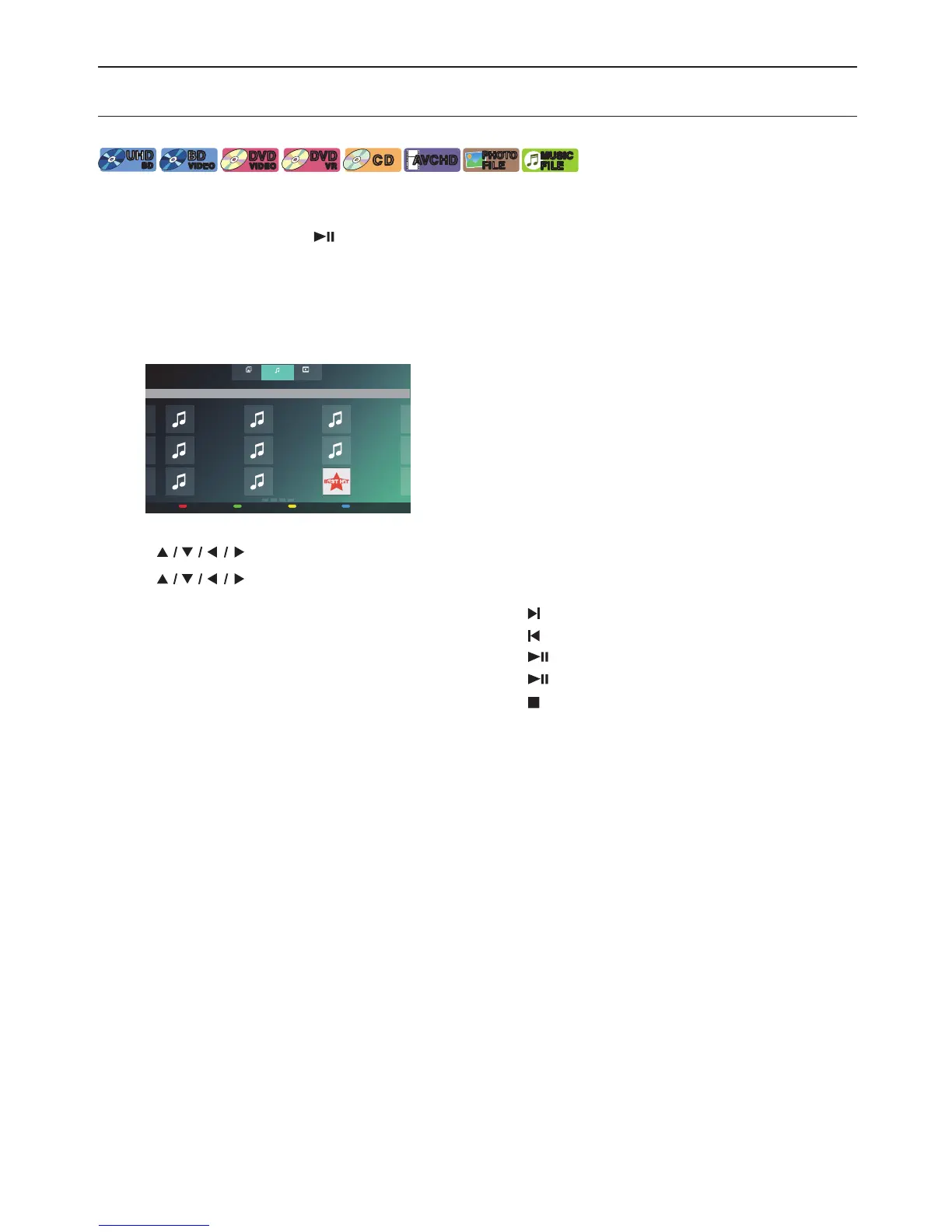 • For Blu-ray Disc™ / DVD / AVCHD / audio CD or a disc containing only one type of file, playback will start