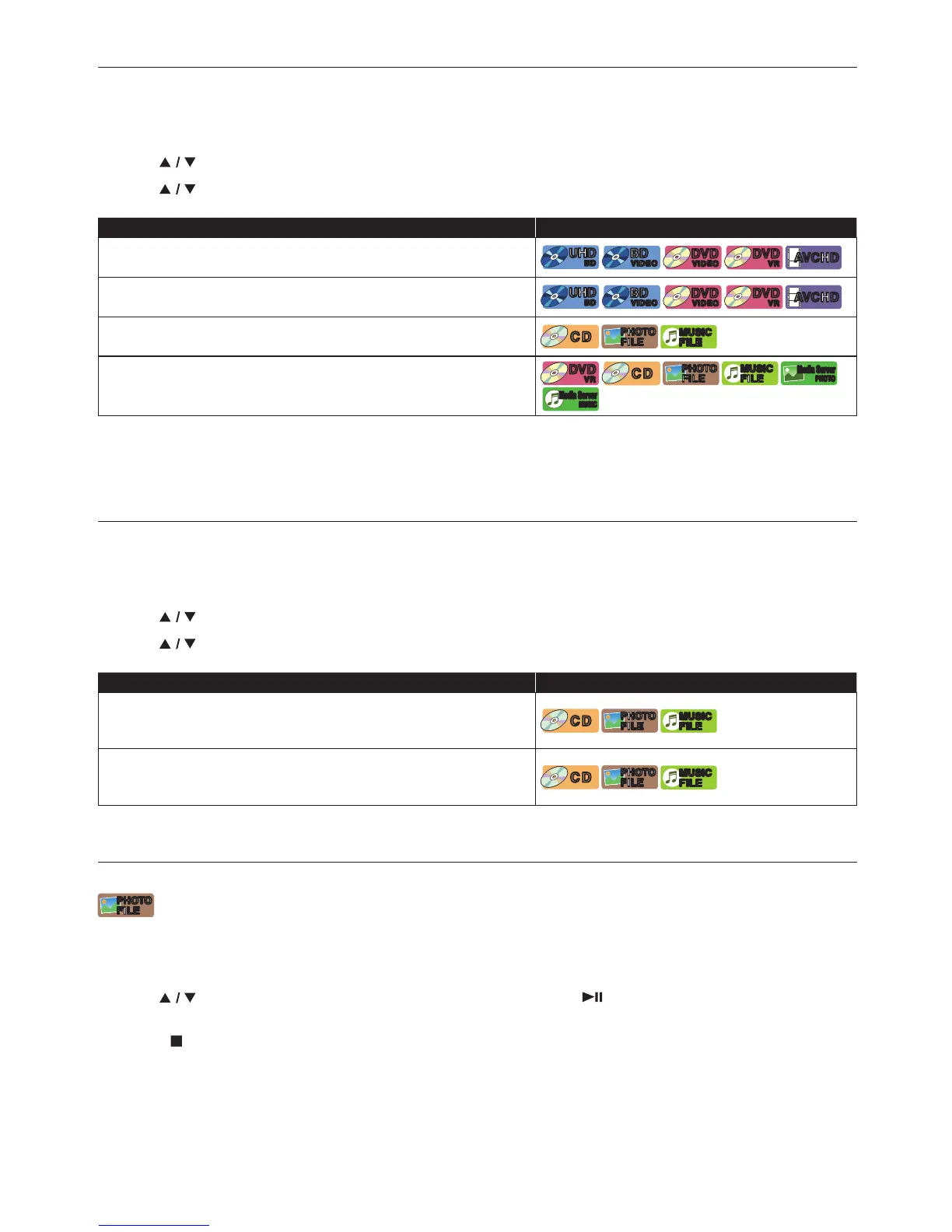 Plays all Songs or Photo / Music files in the current folder