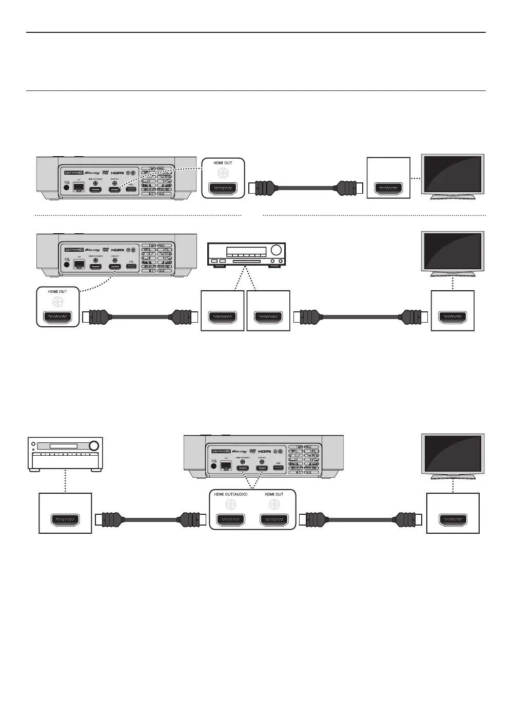 • In order for Ultra HD Blu-ray™ video playback to work with this connection, a 4K/HDR compatible AV receiver/