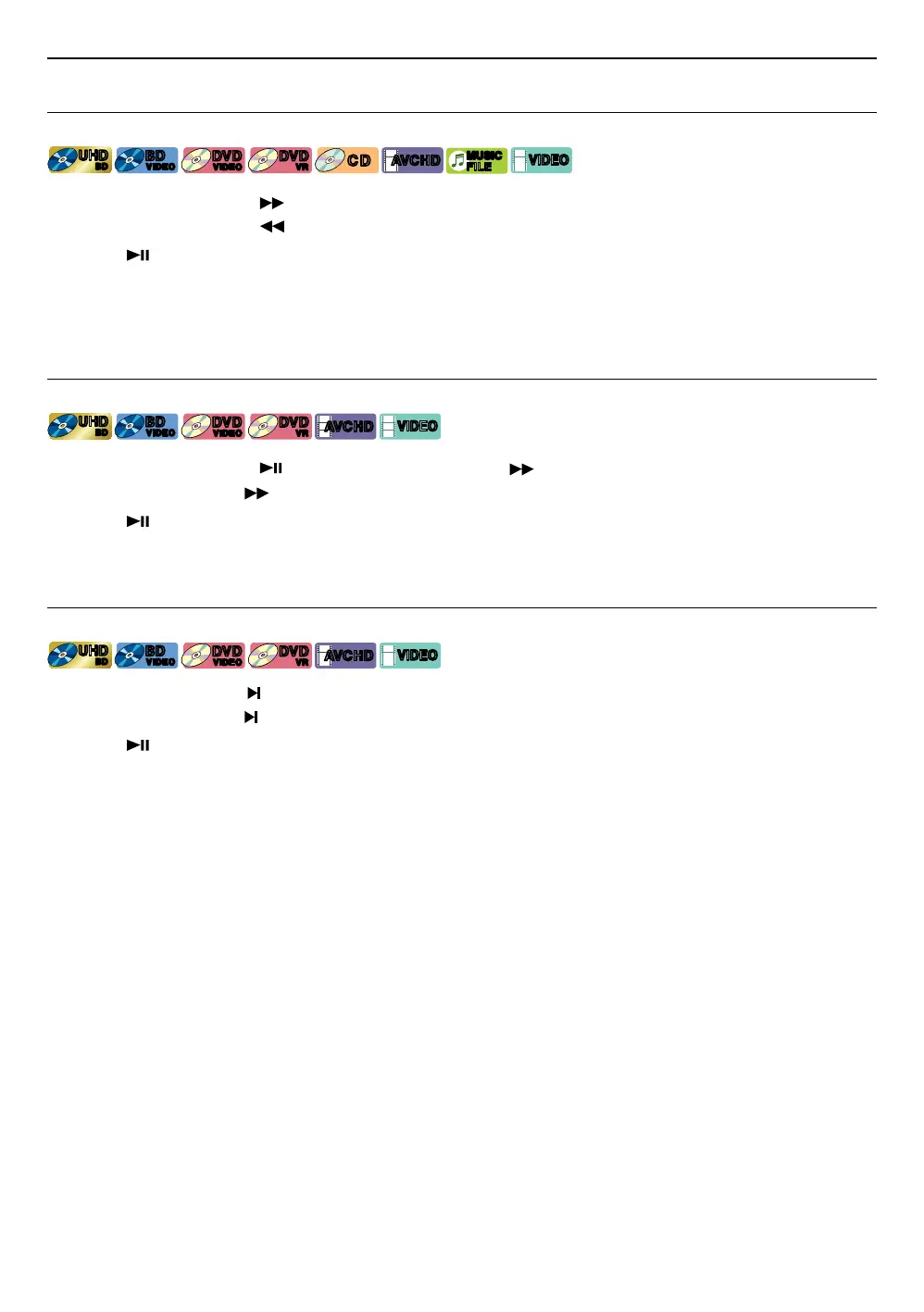 • For Ultra HD Blu-ray™ Disc, Blu-ray Disc™, DVD, DVD-VR, AVCHD, Audio CD, music, video files, speed changes at