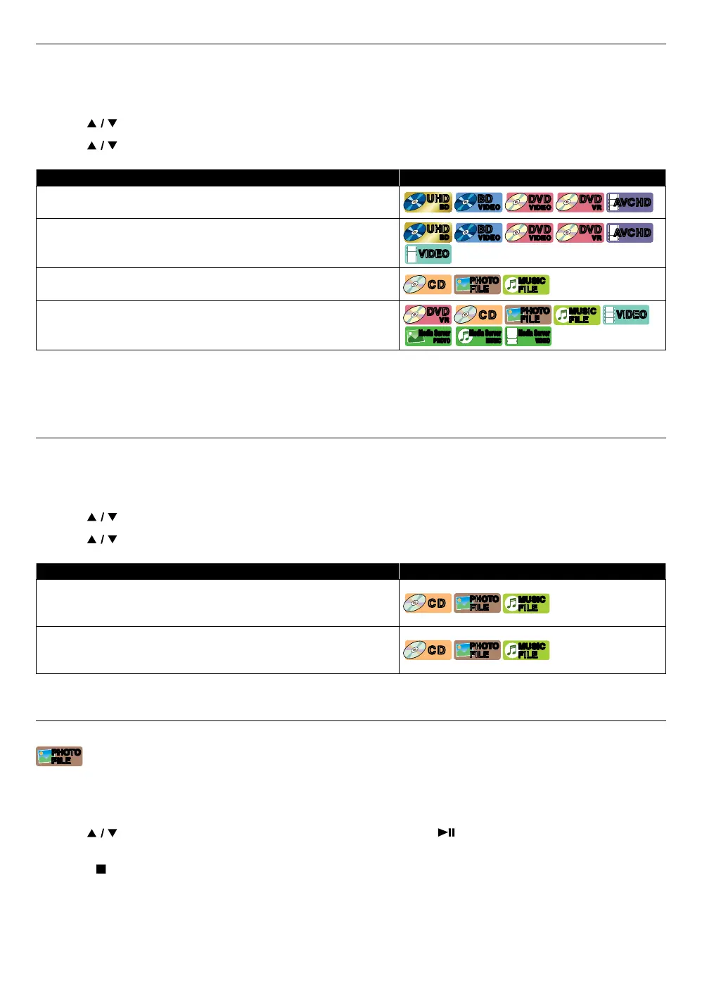 Plays all songs or photo / music files in the current folder