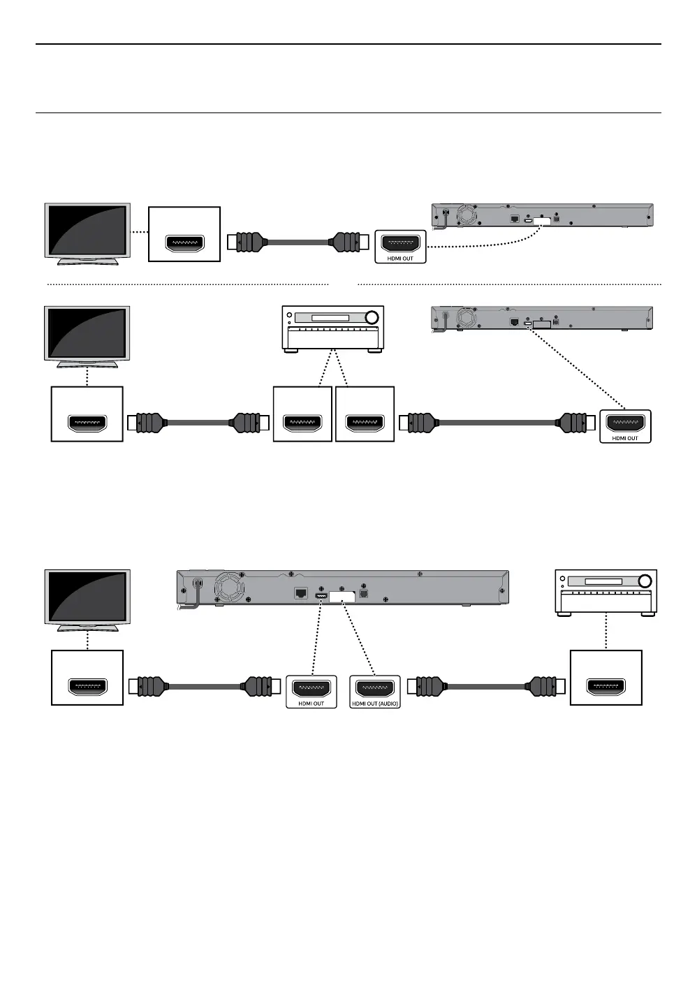AV receiver/amplifier must be connected to this unit. Otherwise, the audio will not be output.