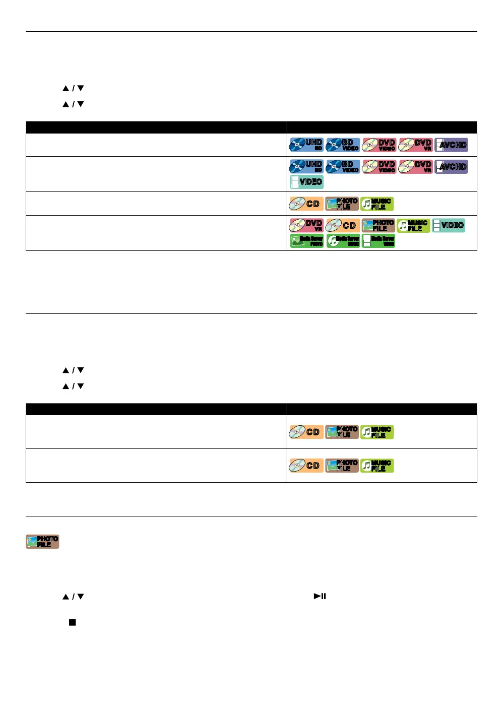 Plays all songs or photo / music files in the current folder