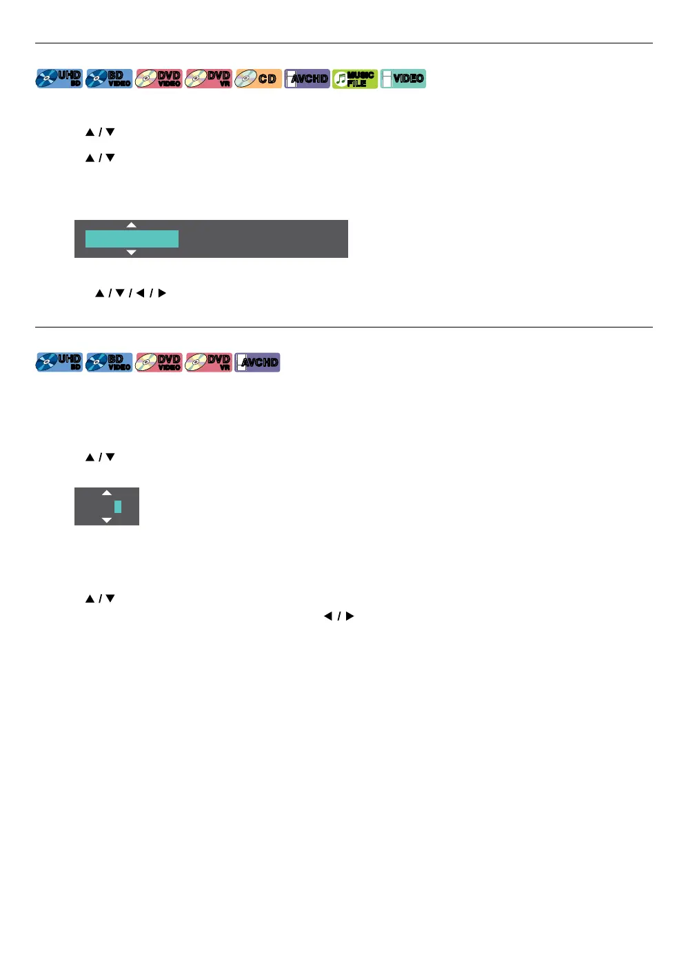 • For BD-videos and AVCHD files, the number select menu is displayed even if there is no button menu in the