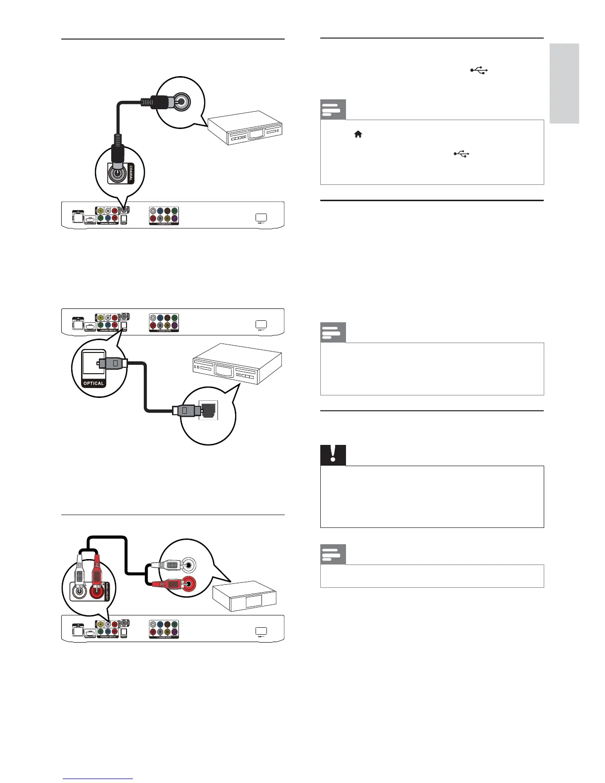 1 Connect an optical cable (not supplied) to: