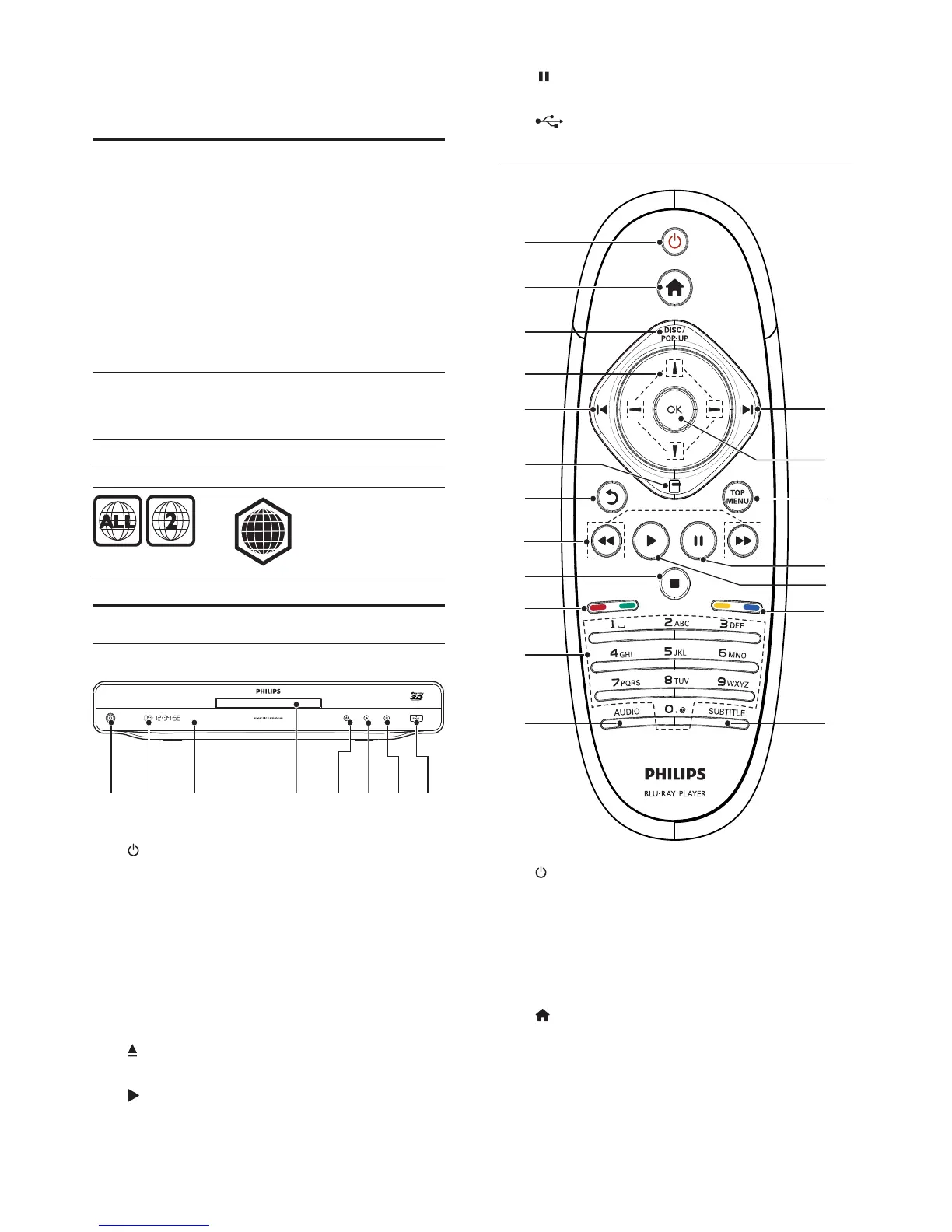 Turn on this player or switch to standby •