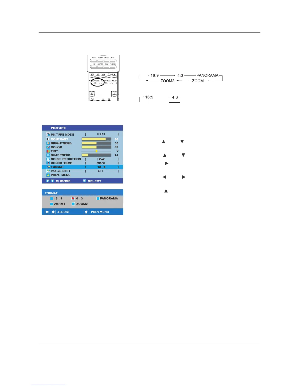 ■ Under Component video input mode, only 16:9 and 4:3 modes are