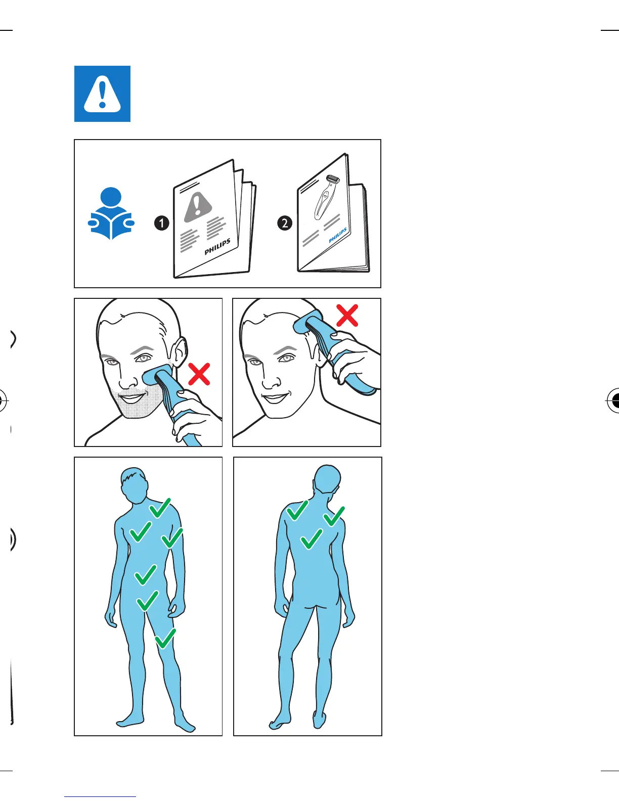Philips BG2026 - Safety and Usage Guidelines; General Safety Precautions; Correct Grooming Areas