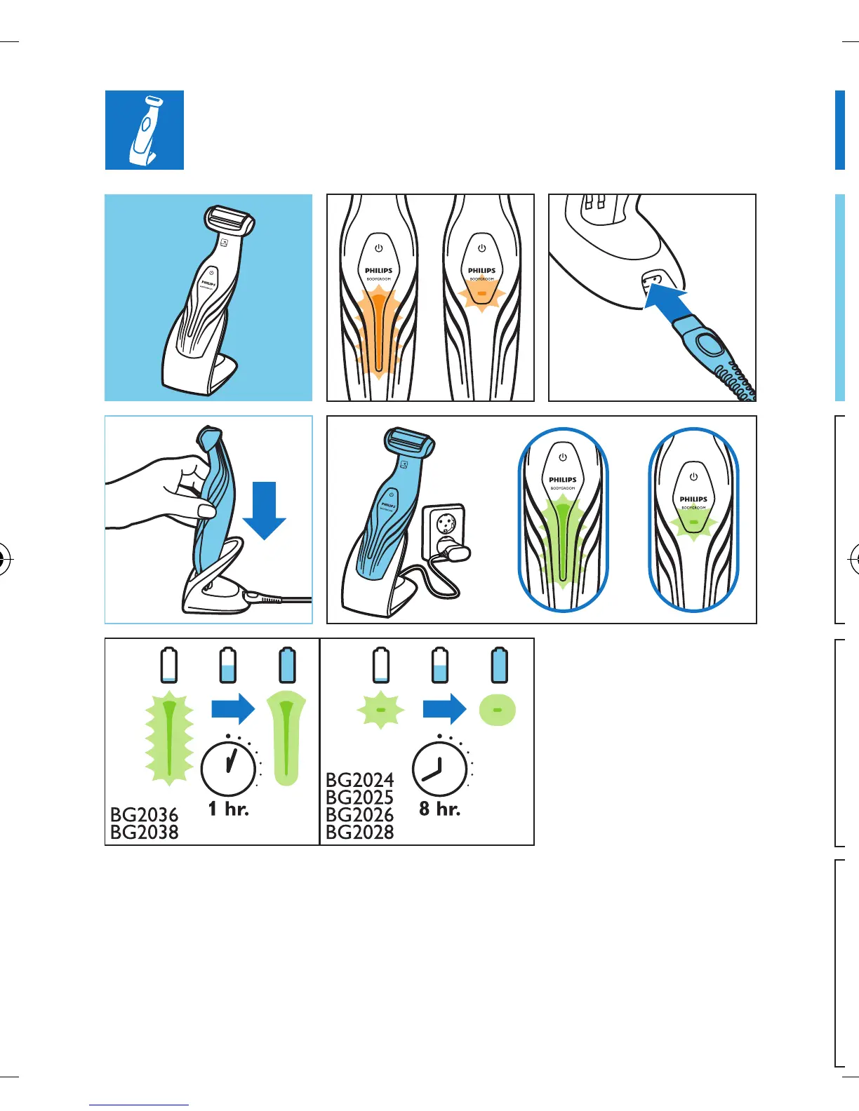 Philips BG2026 - Charging and Power Management; Charging the Bodygroomer; Charging Times by Model