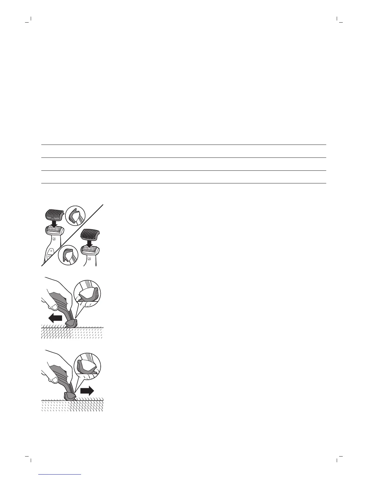 zupci češlja okrenuti u smjeru u kojem ćete pomicati uređaj.