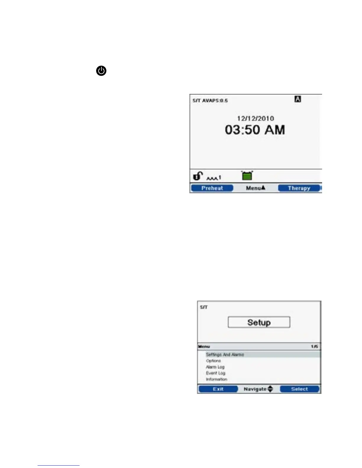 d. Initiate therapy by selecting the Right (Therapy) key. Selecting this key starts the airow