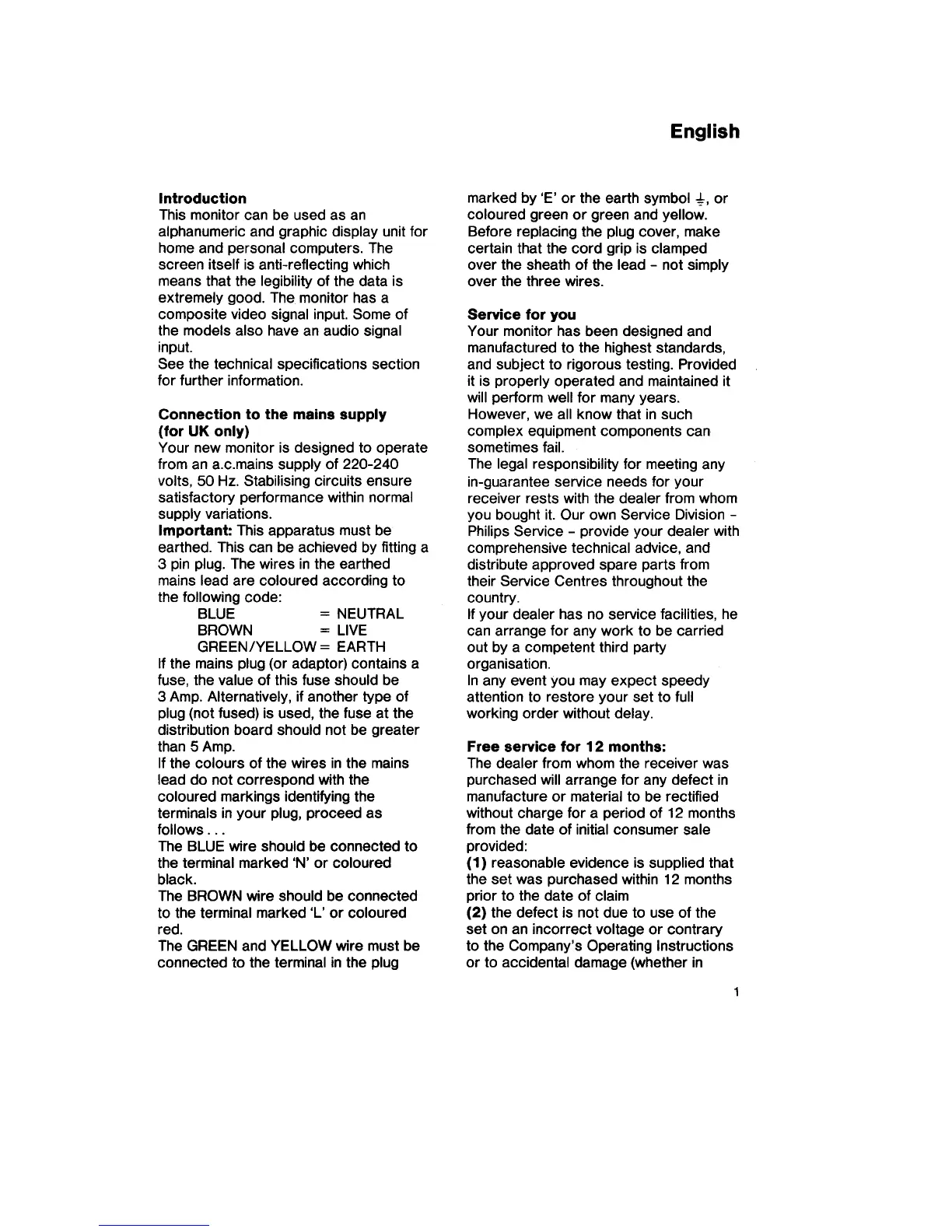 Philips BM 7500 - Introduction; Mains Connection (UK); Service and Warranty