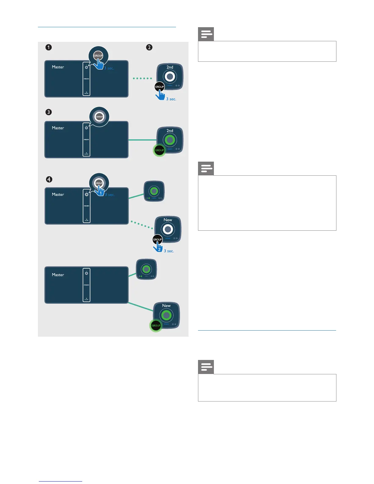 1 Hold GROUP on the rst speaker for 3