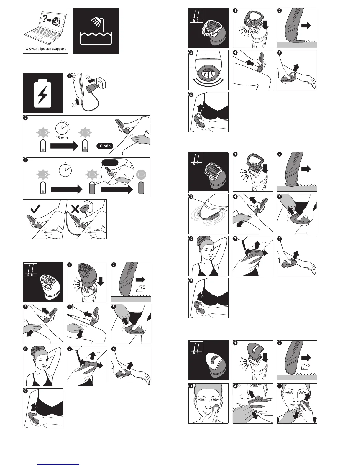 Philips BRE605/00 - Charging and Basic Epilation; Charging the Device; General Epilation Technique