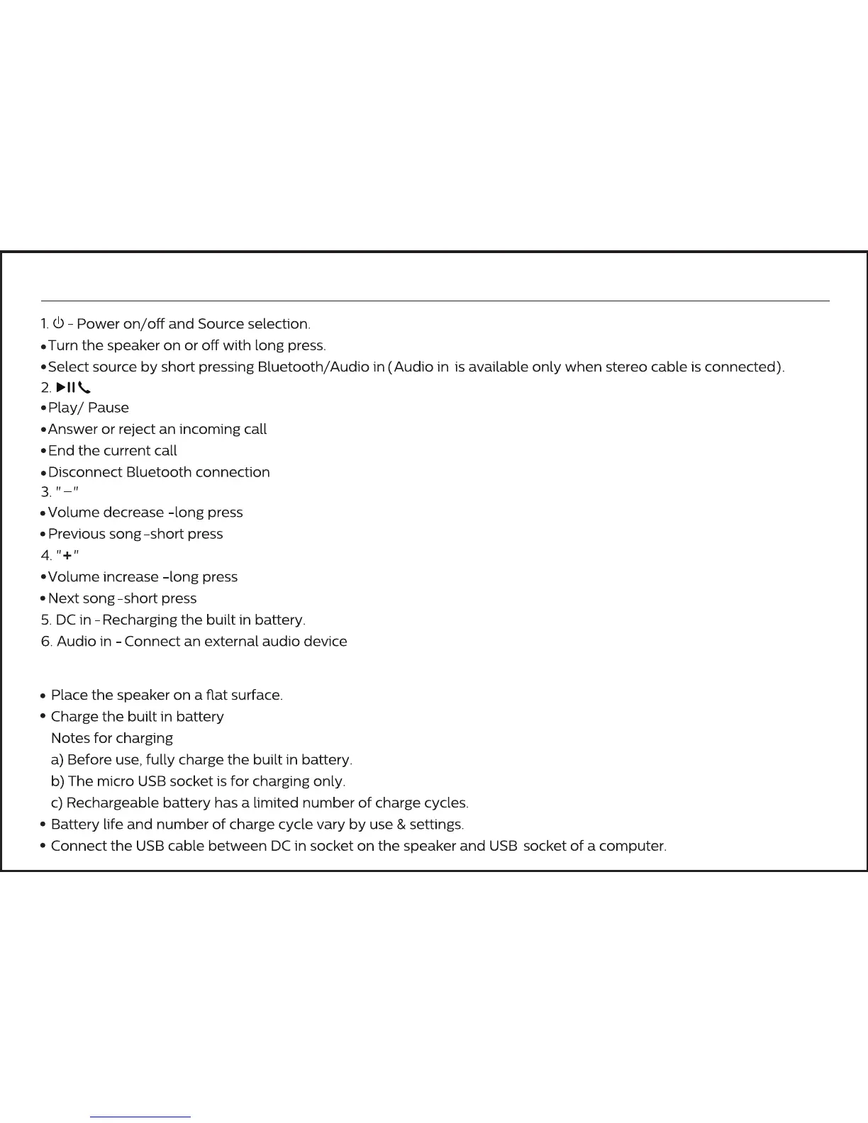 Philips BT112 - Overview of the Speaker; Get Started; Charging Notes