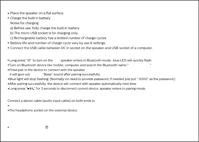 Insert stereo cable to enter audio in mode. Without stereo cable, speaker cannot go into audio in mode.