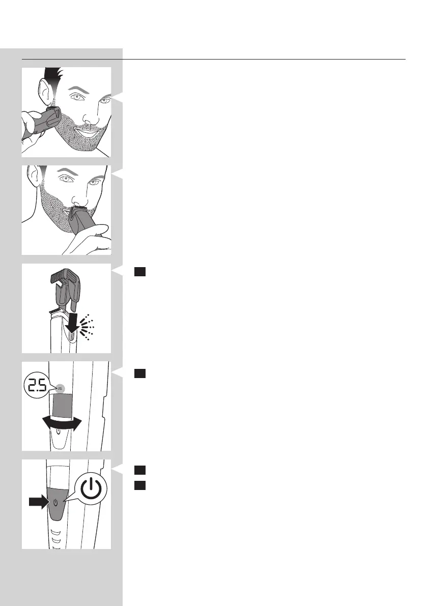 4 Če želite prirezati brado, prirezovalni glavnik počasi pomikajte skozi