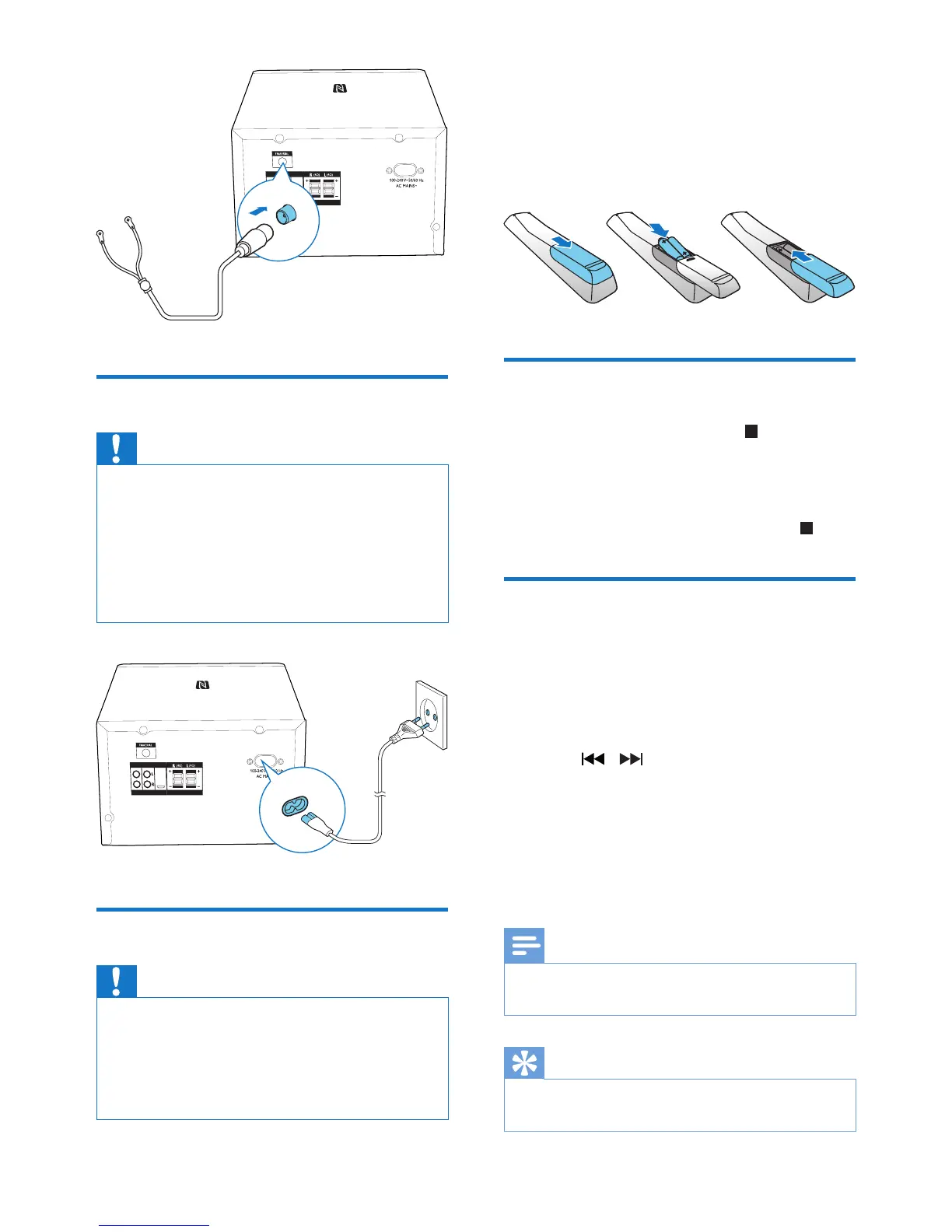 • Risk of electric shock! When you unplug the AC power