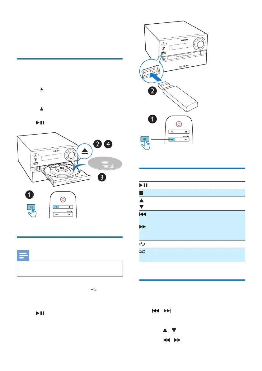 1 Press CD to select CD source.