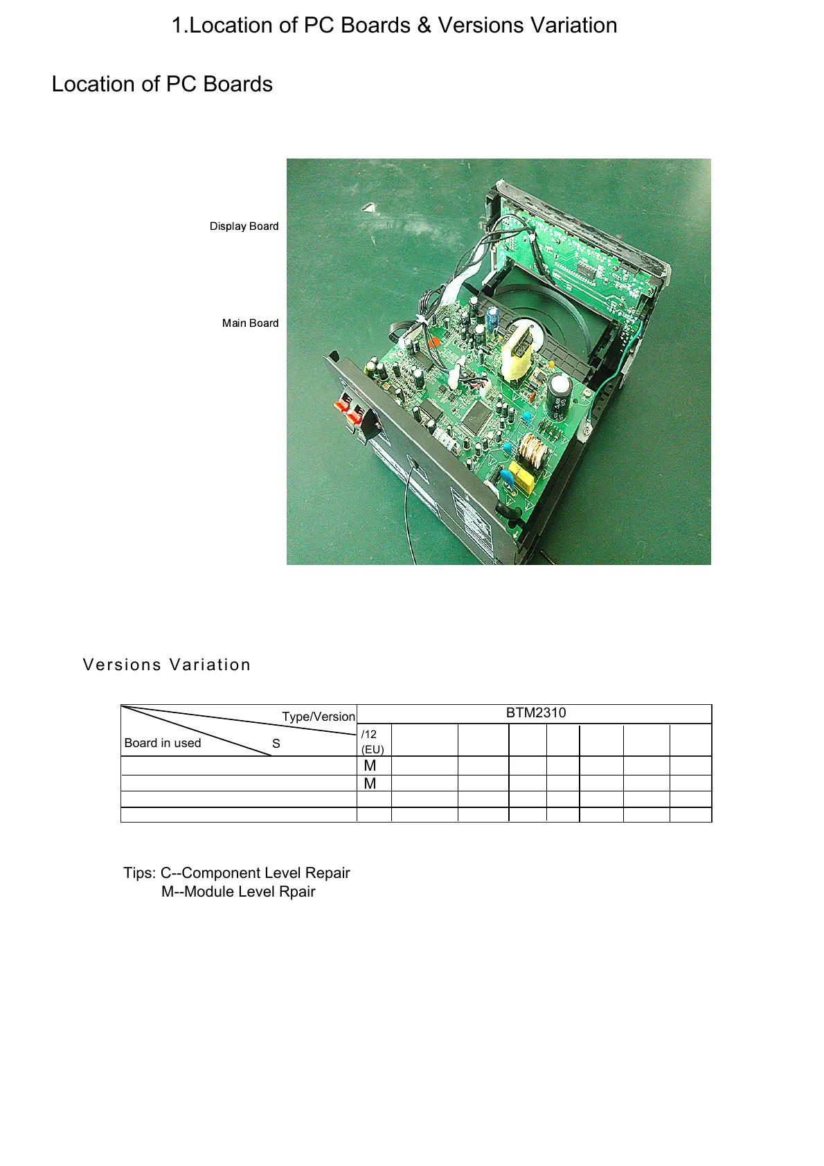 Philips BTM2310 - Location of PC Boards & Versions Variation