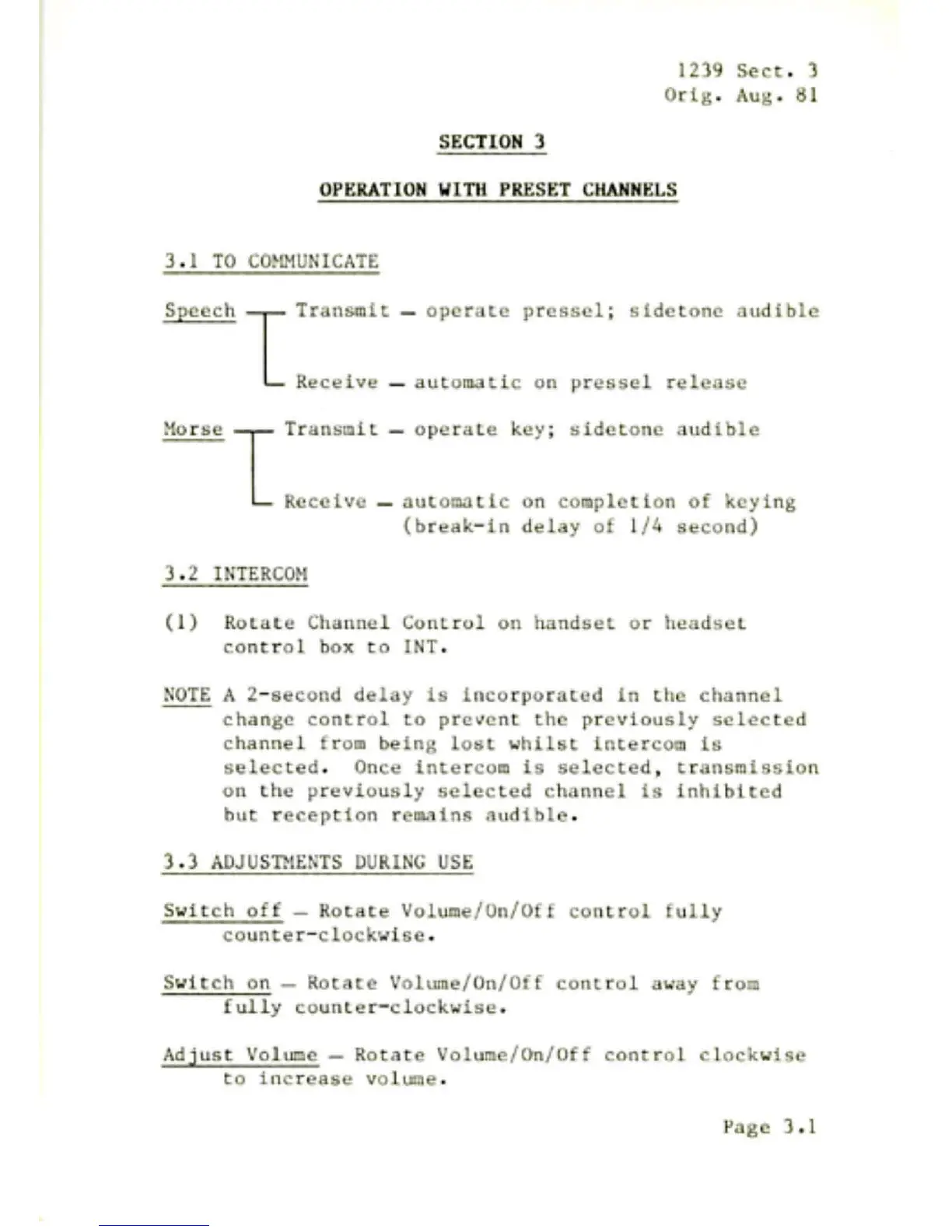Philips Callpac PRC 2000 - Operation with Preset Channels; Communication Procedures