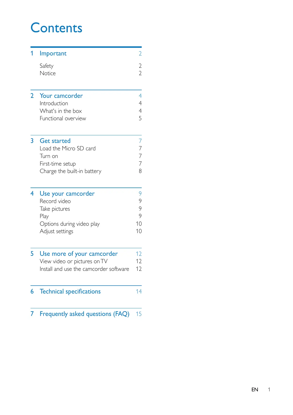 4 Use your camcorder 9