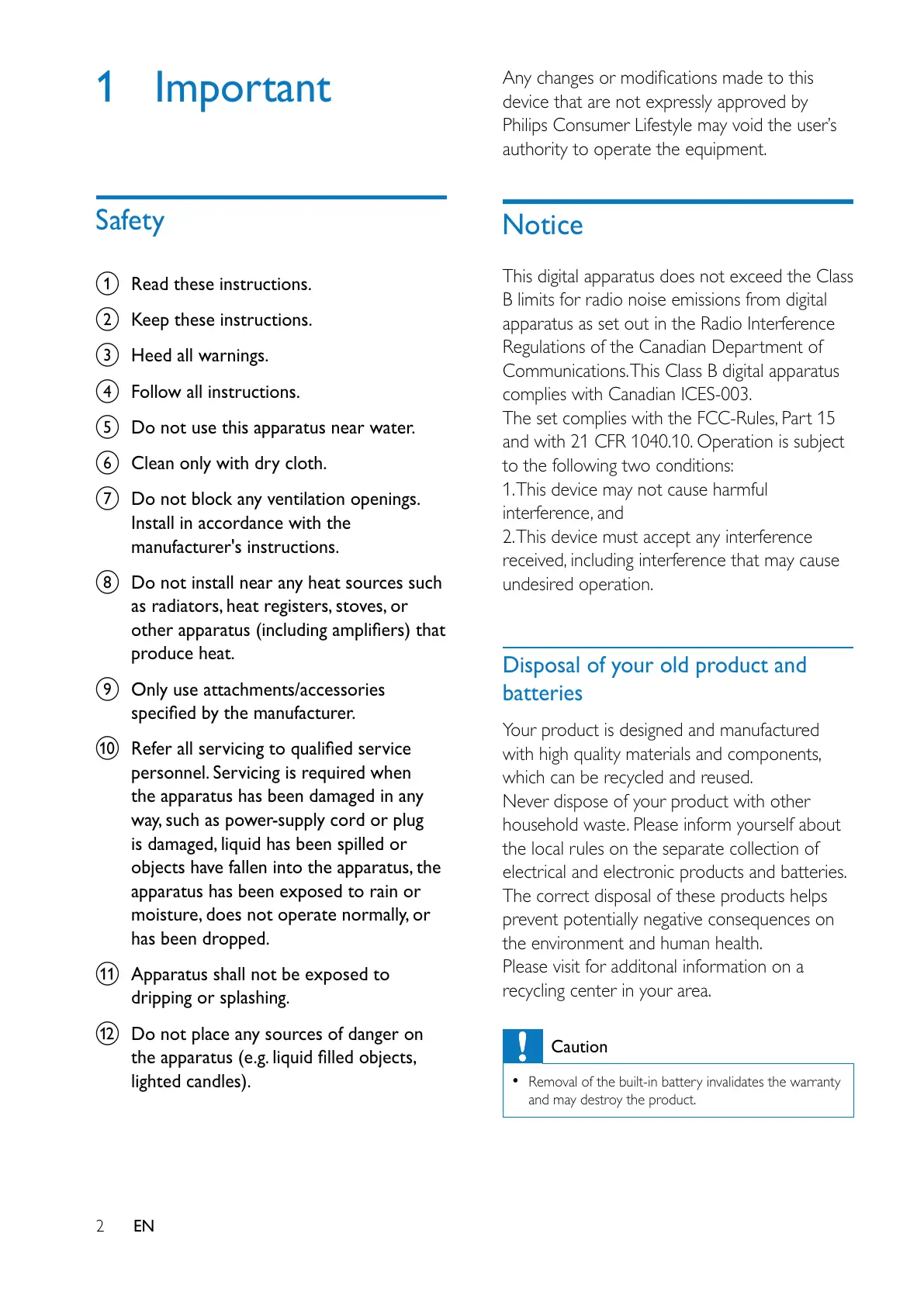 Philips Consumer Lifestyle may void the user’s