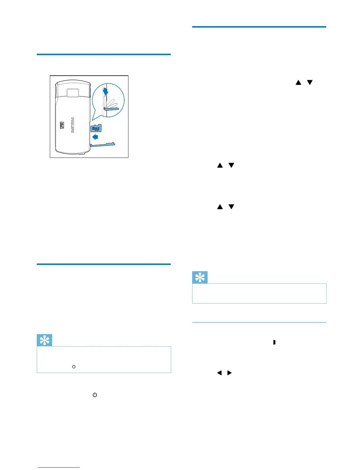 4 Tap / to set the day, month and year