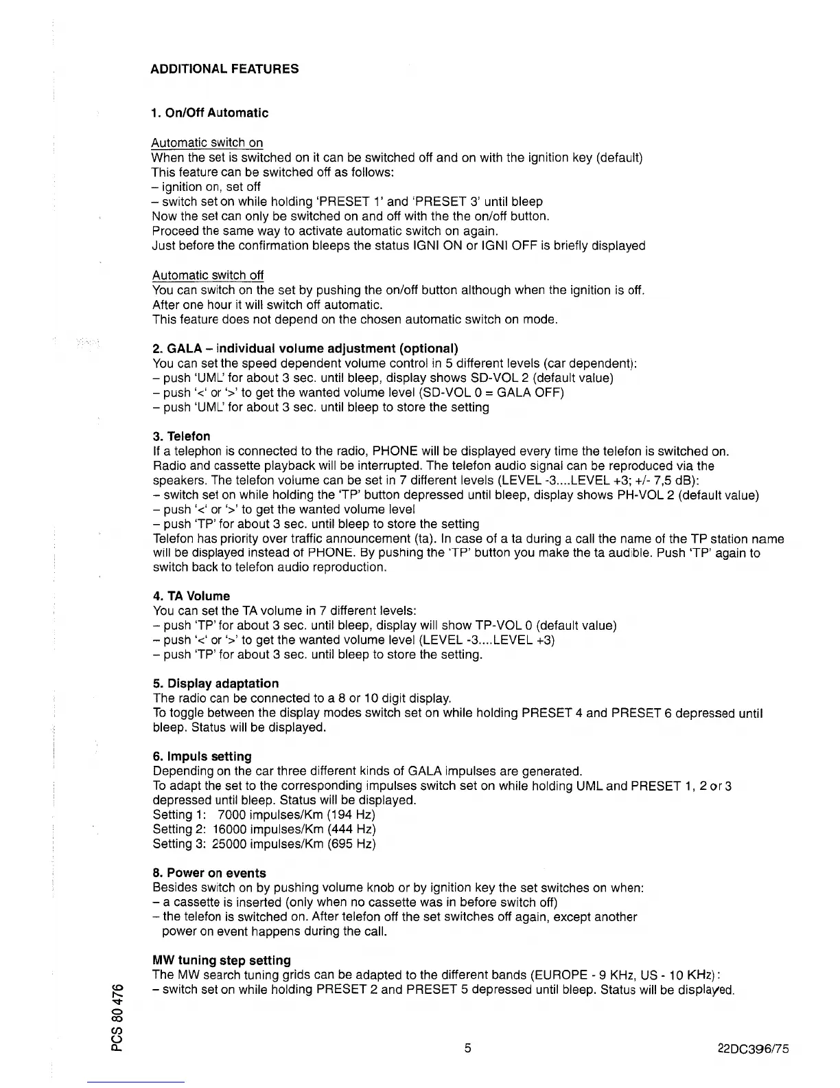 Philips CAR 400 - Additional Features; On;Off Automatic; GALA - Individual Volume Adjustment; Telefon