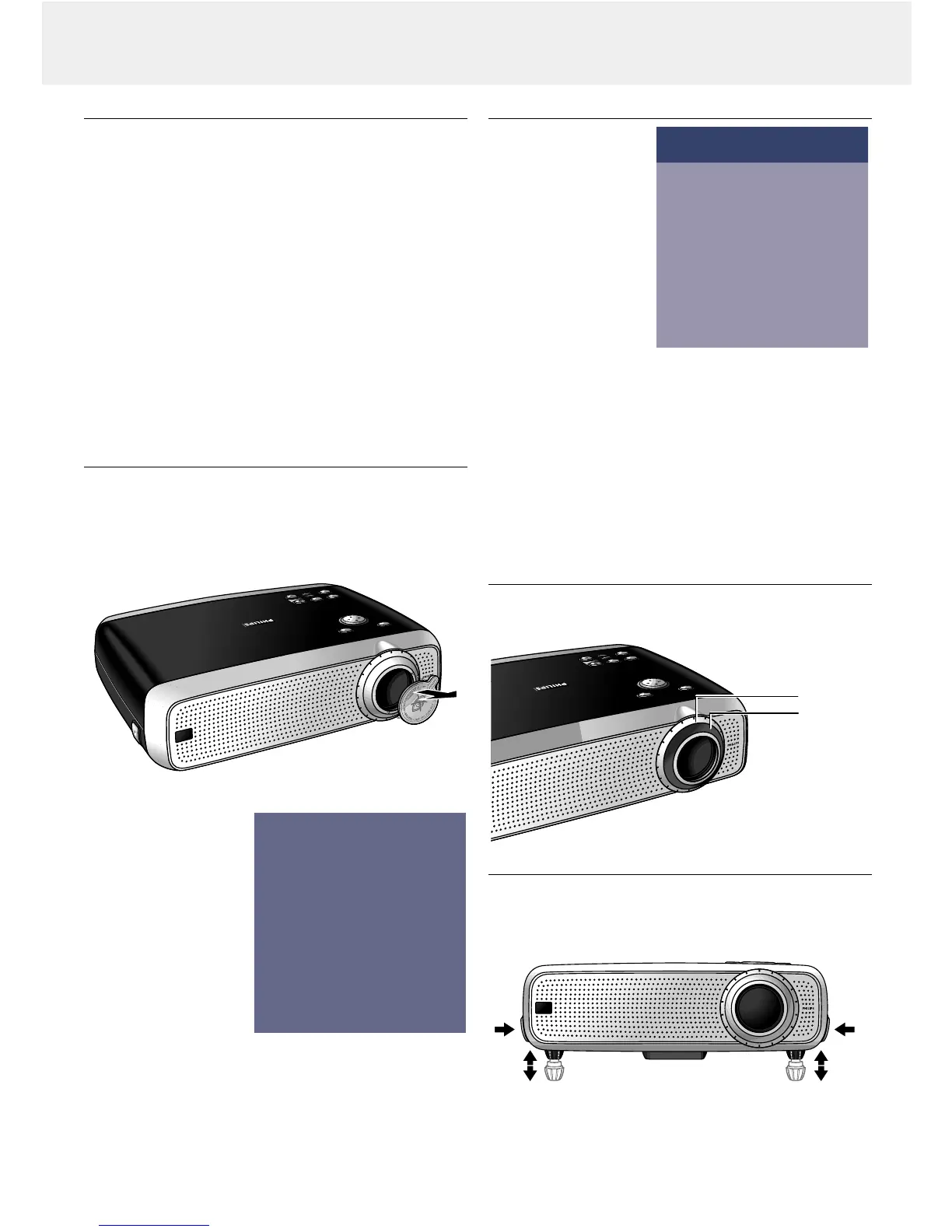 • Keep both adjusters (A) pressed and lift to raise the projector.