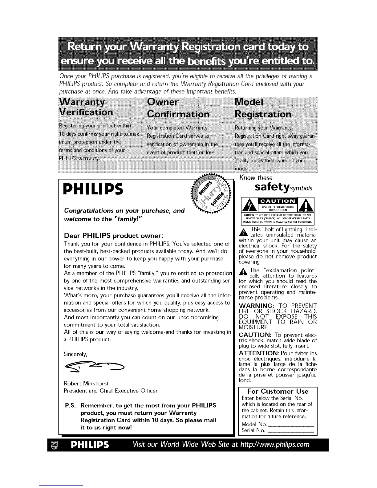 PHILIPS product. So complete and return the IA,/arranty Registration Card enclosed with your