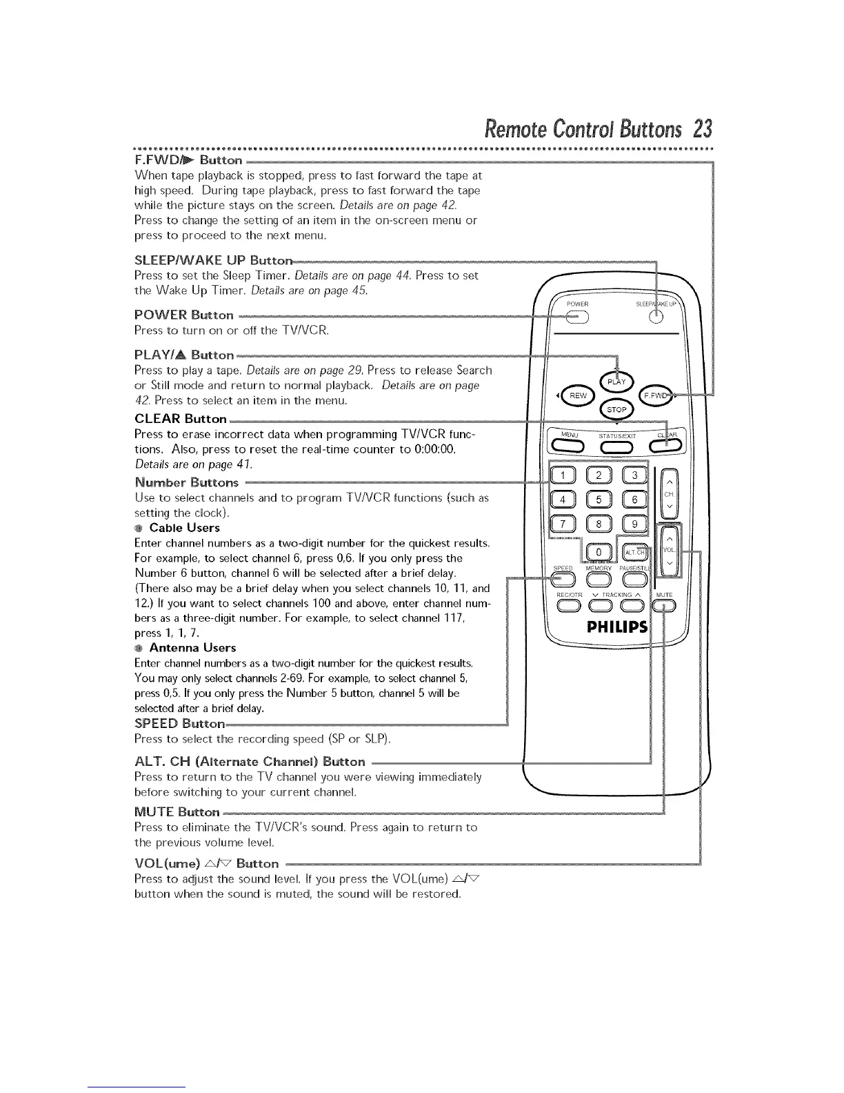 Pressto turn on or off the TV/VCR.