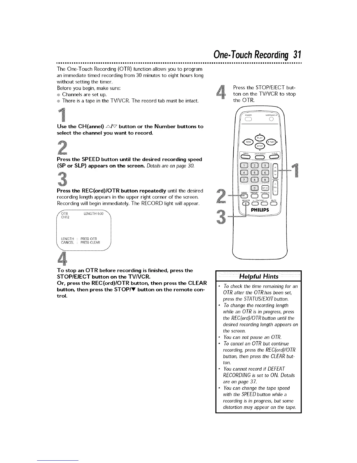 Or, press the REC(ord)/OTR button, then press the CLEAR