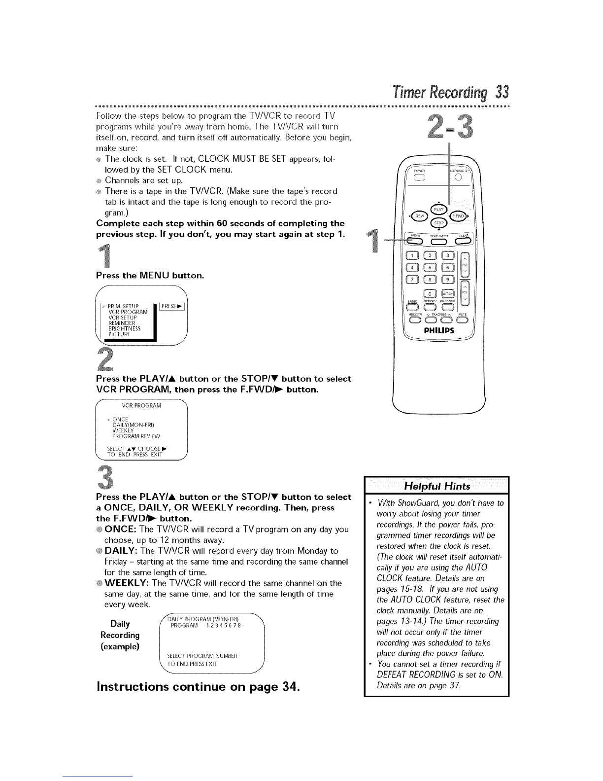 _;_ONCE: The TV/VCR will record a TV program on any day you