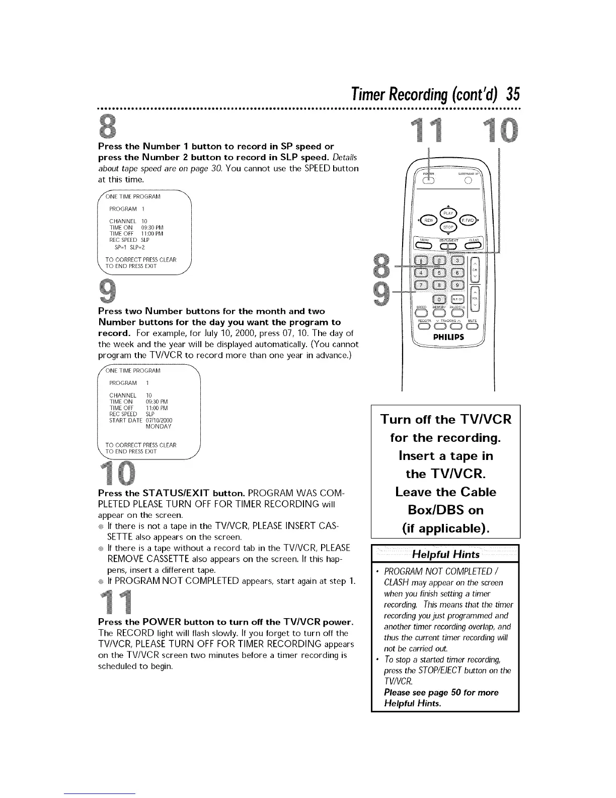 TV/VCR, PLEASE TURN OFF FOR TIMER RECORDING appears
