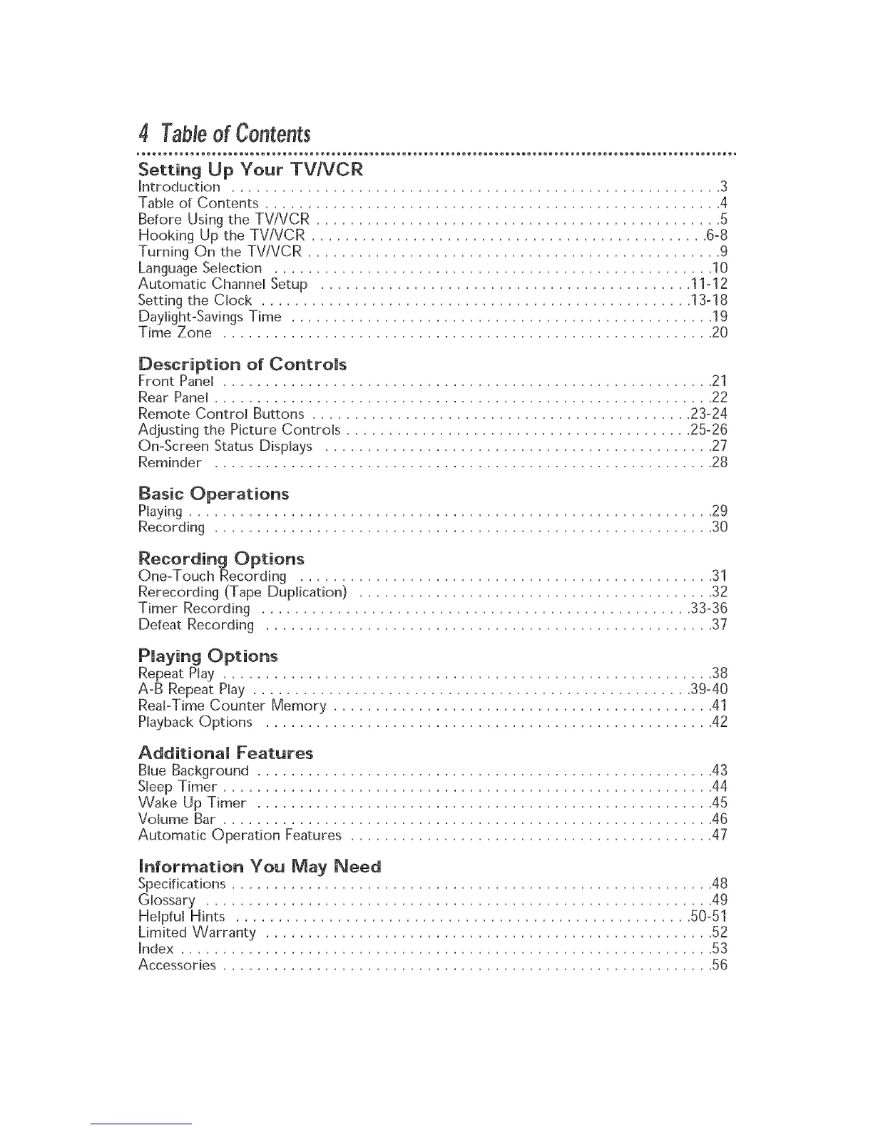 Timer Recording ................................................... 33-36