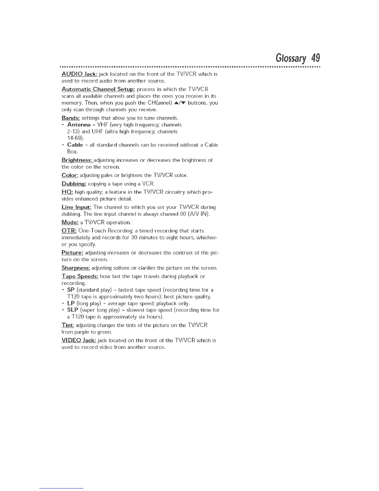 Tint: adjusting changes the tints of the picture on the TViVCR