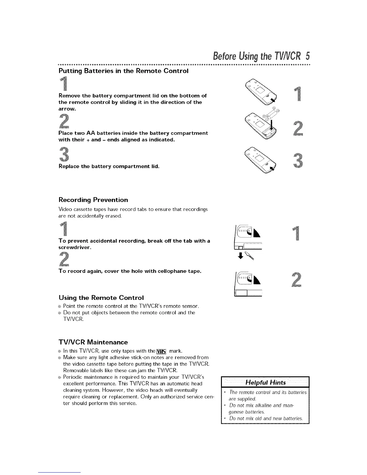 BeforeUsingthe TV/VCR5