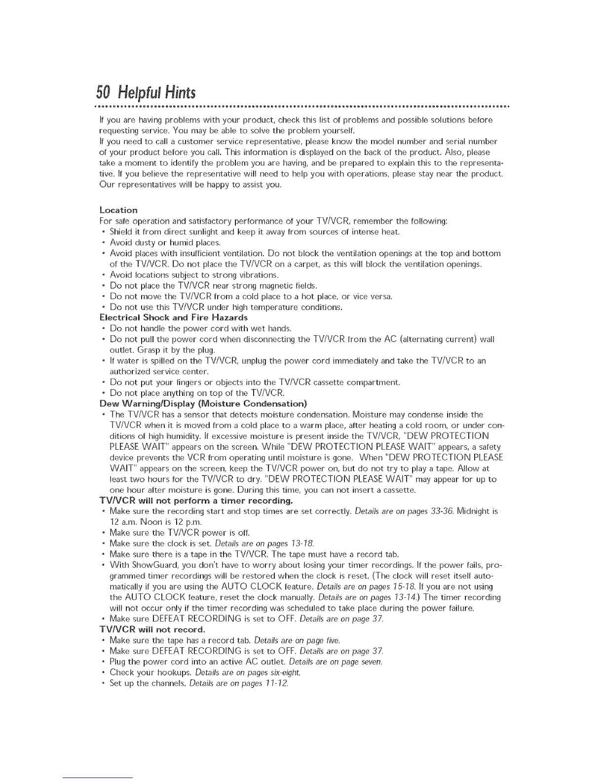 least two hours for the TViVCR to dry. "DEW PROTECTION PLEASEWAIT" may appear for up to