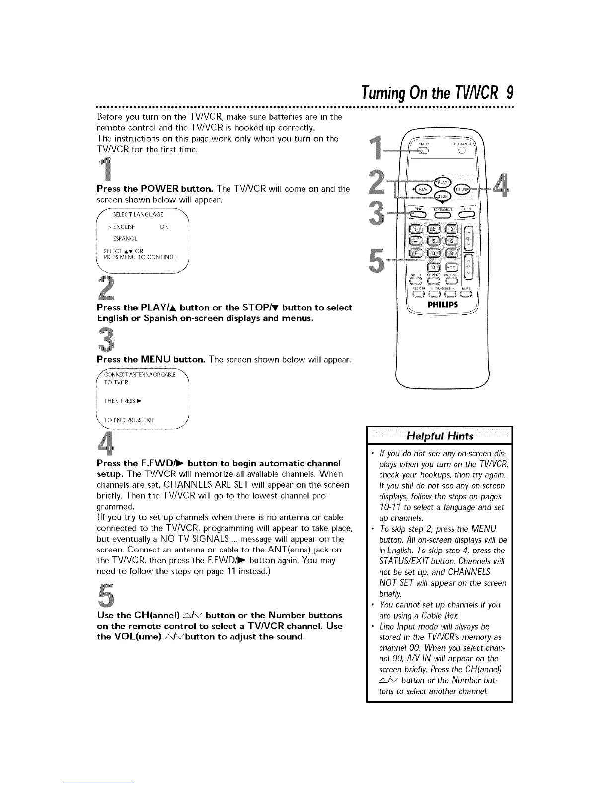 briefly. Then the TV/VCR will go to the lowest channel pro-