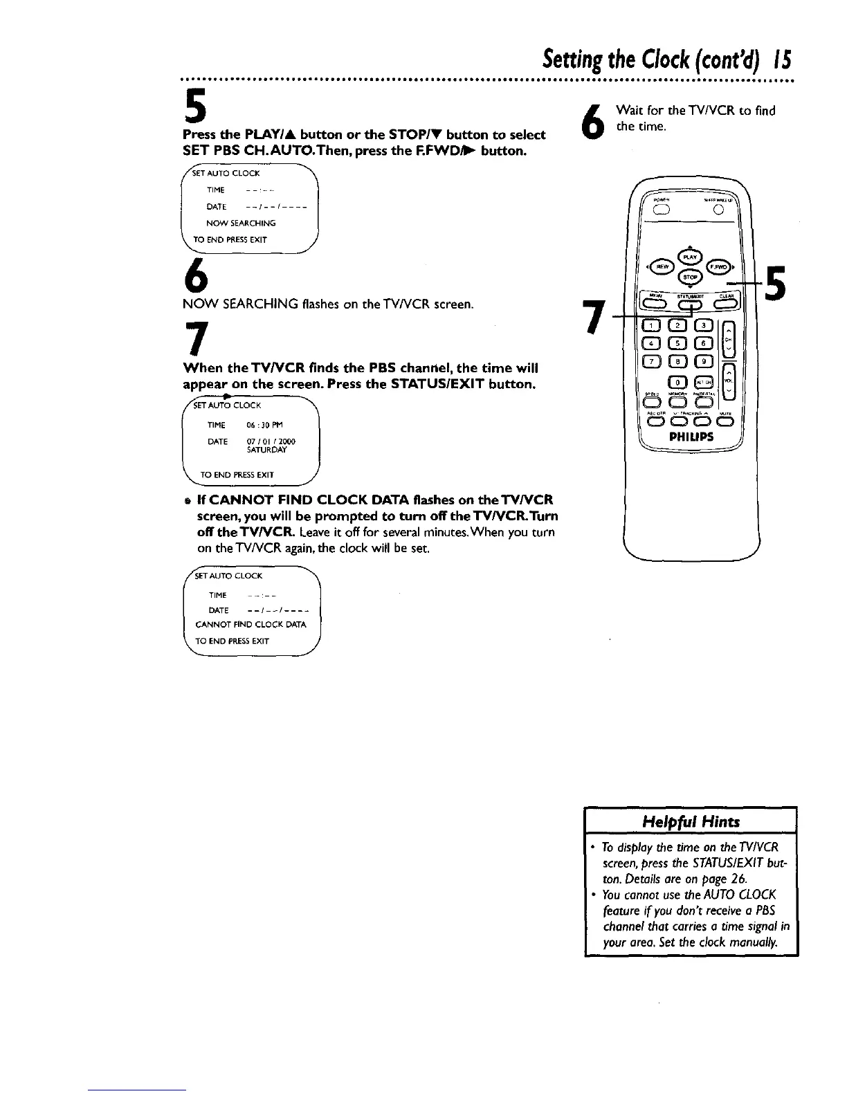 When the TV/VCR finds the PBS channel, the time will