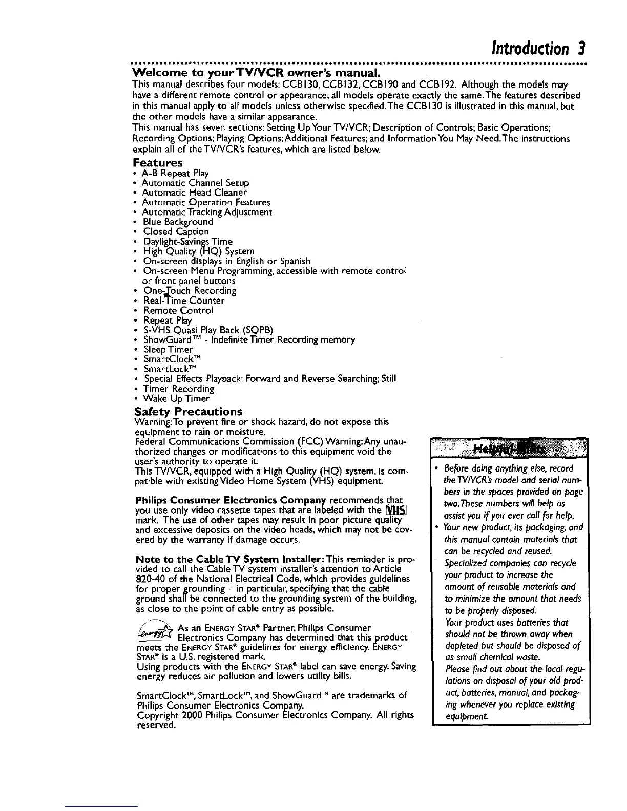 explain all of the TV/VCR's features,which are listed below.