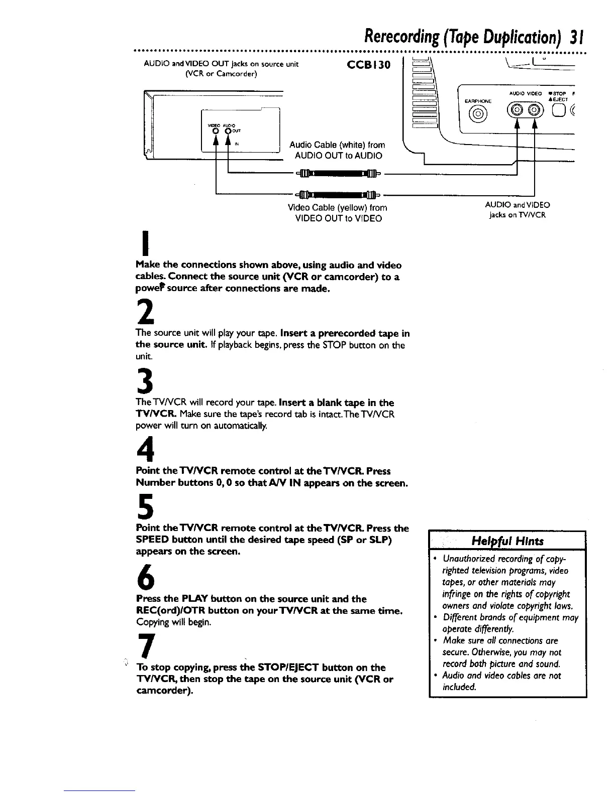 TV/VCR, then stop the tape on the source unit (VCR or