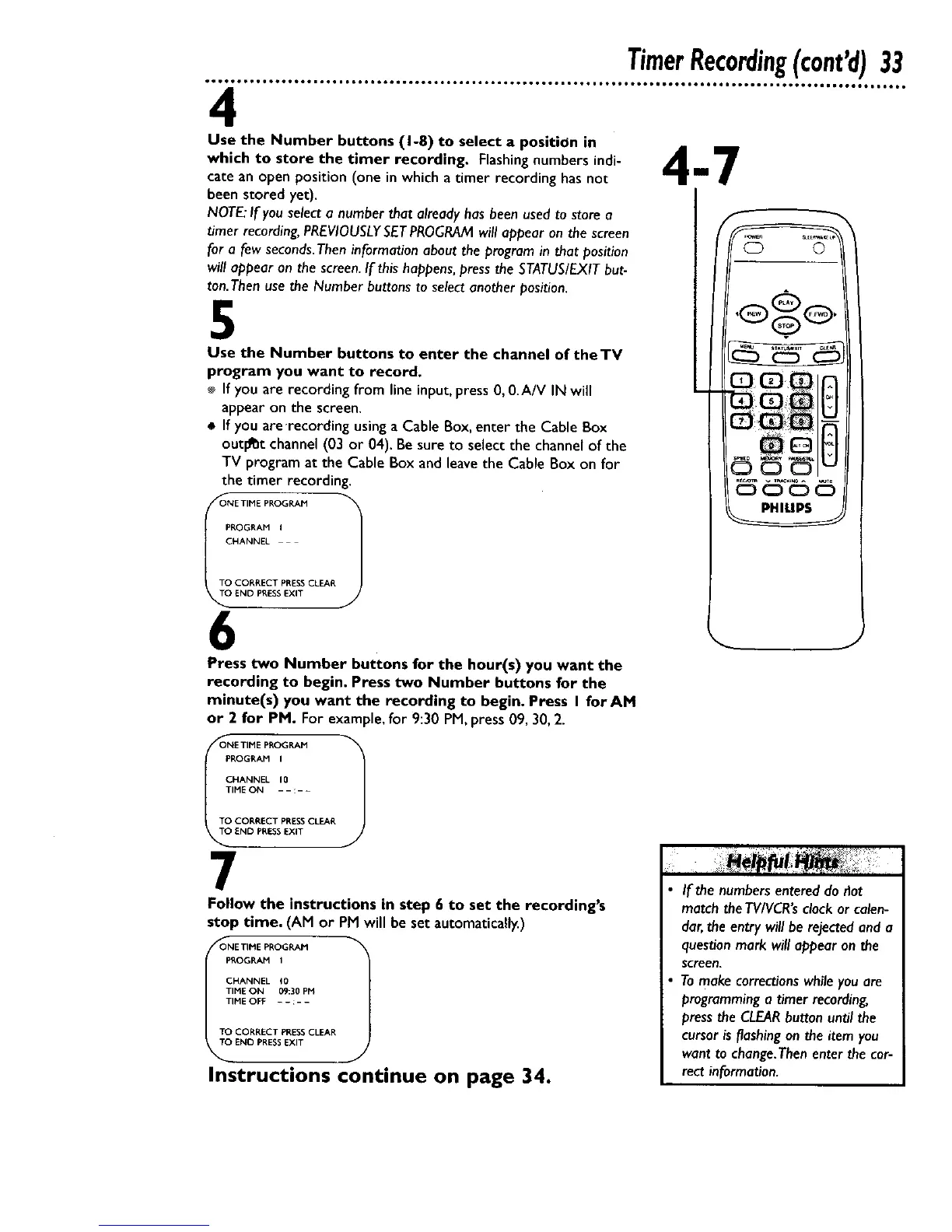 which to store the timer recording. Flashing numbers indi-